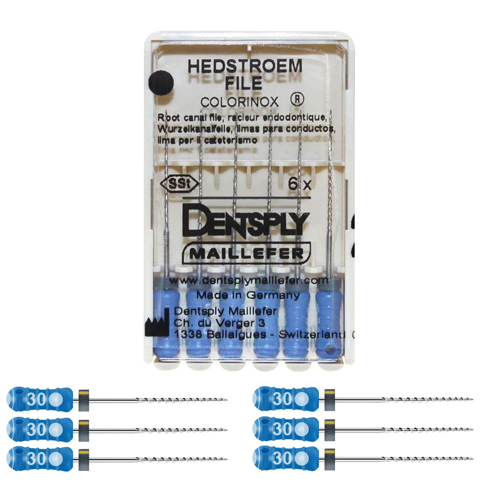 H-FILES Colorinox Dentsply MAILLEFER (H-файл, Hedstroem File, бурав Хедстрема) МАЛИФЕР, ручной стоматологический эндодонтический инструмент из нержавеющей стали, размер 30, длина 25 мм.