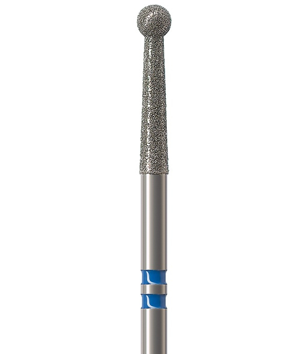 Бор алмазный. Форма шаровидная, с коническим удлиненным воротничком. Предназначен для обрабюотки корневых каналов.