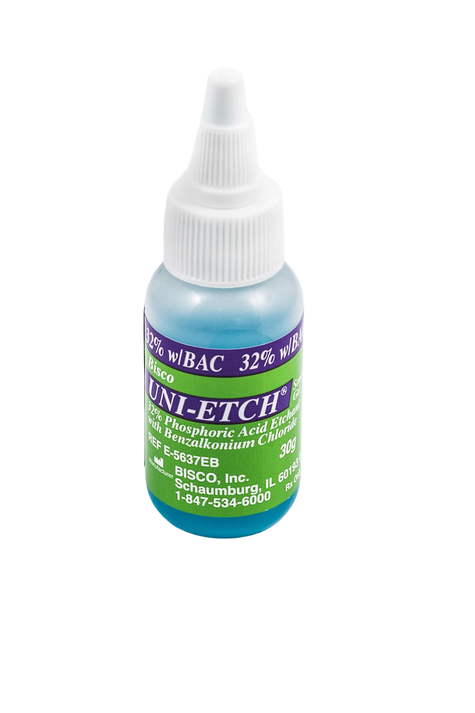 Полугель UNI-ETCH 32% имеет в своей основе полимерный сгуститель, легко смывается и не оставляет осадка на поверхности дентина, что увеличивает силу связки на 30%.